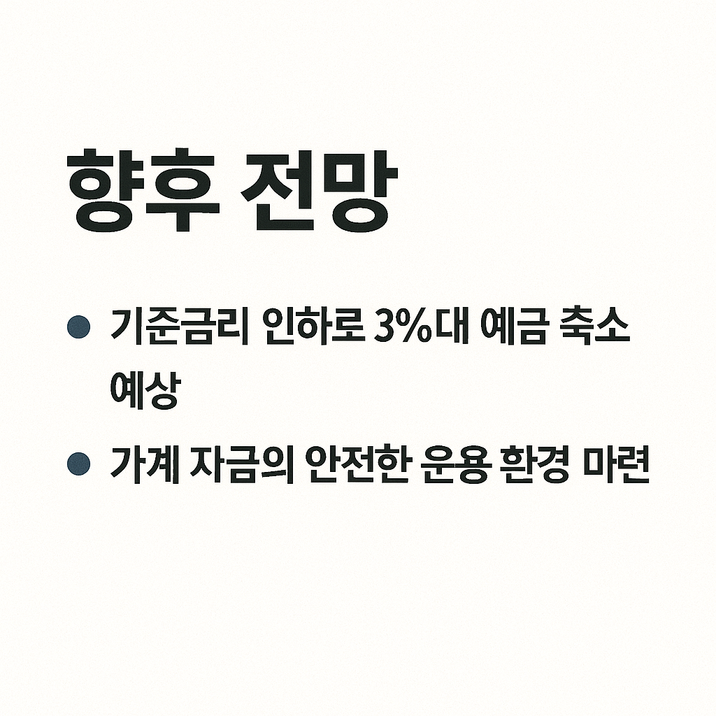 기준금리가 점진적으로 인하될 가능성이 높은 만큼, 현재 남아 있는 3%대 예금은 점점 사라질 가능성이 큽니다. 따라서 여유 자금이 있는 분이라면 지금 시점에서 상품 가입 여부를 검토하는 것이 합리적입니다. 특히 이번 예금자보호 한도 상향은 단순히 개인 자산 보호를 넘어 가계 자금의 안전한 운용 환경을 마련했다는 점에서 의미가 큽니다. 예적금 중심의 보수적인 투자 성향을 가진 분들에게는 한층 더 안정된 금융 환경이 조성된 셈입니다.