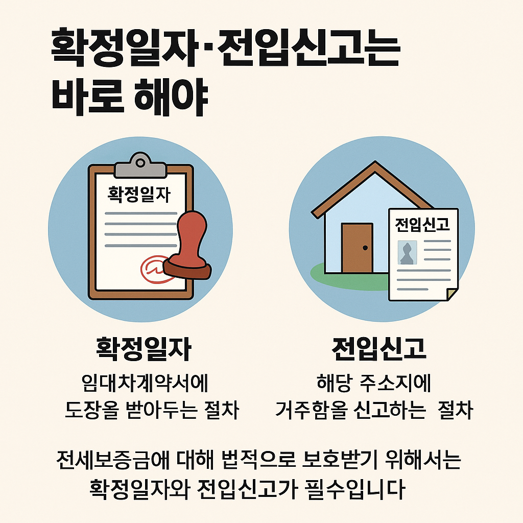 전세보증금에 대해 법적으로 보호받기 위해서는 확정일자와 전입신고가 필수입니다.
