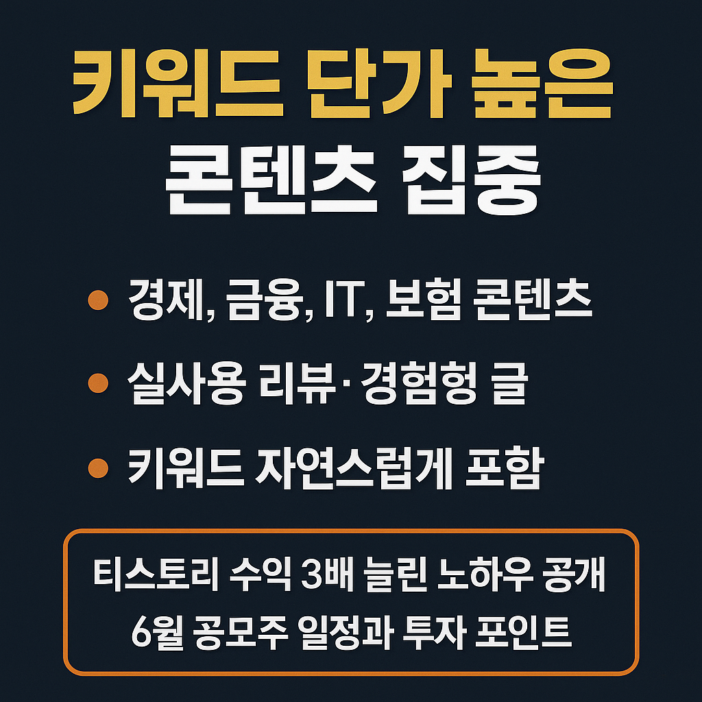 -예: "티스토리 수익 3배 늘린 노하우 공개", "6월 공모주 일정과 투자 포인트"