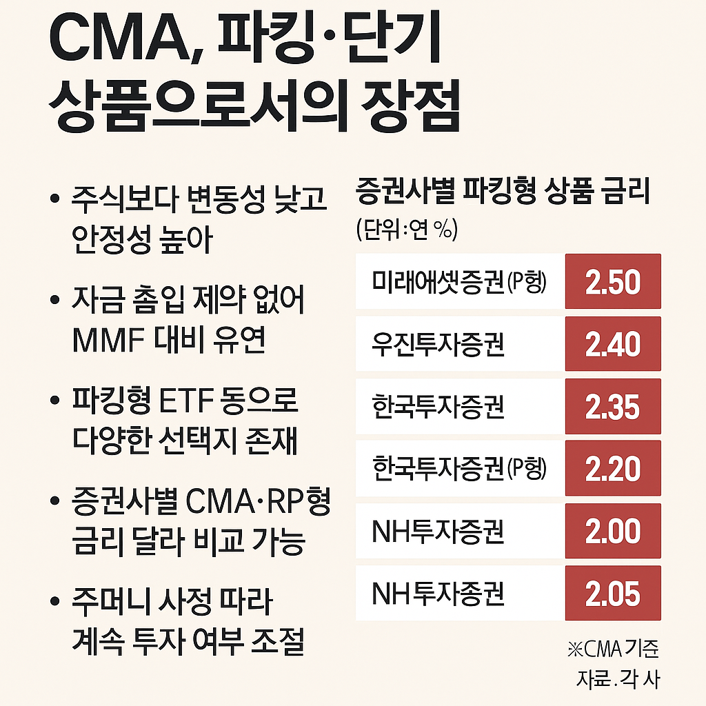 저는 올해 들어 주식 시장이 방향성을 잡지 못하면서 자연스럽게 단기 자금 운용 상품에 눈을 돌리게 됐습니다. 단순히 예금에 넣는 것보다 조금이라도 유연하게 활용하고 싶었기 때문입니다. 실제로 급전이 필요할 때 CMA에서 자금을 바로 출금할 수 있었던 경험은 꽤 유용했습니다.